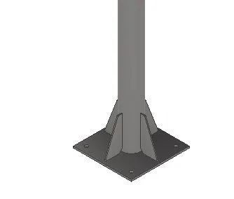 Endeplaten har 4stk avstivere mot røret.